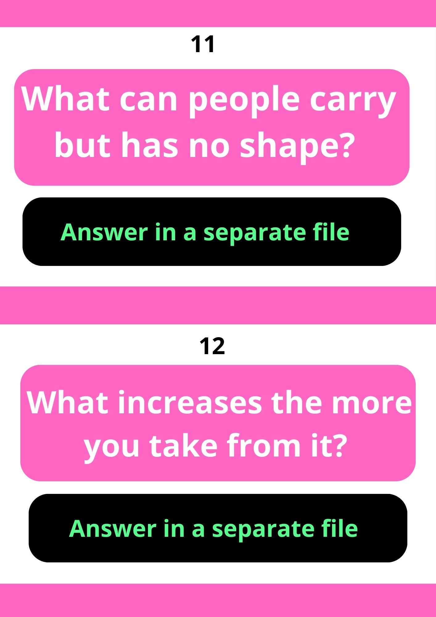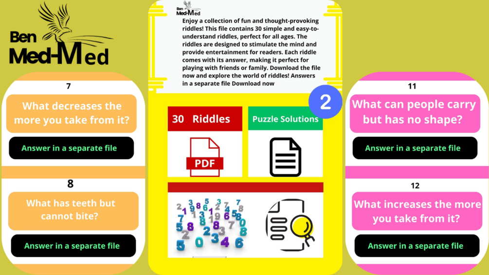 Discover riddles like "What walks without legs and hears without ears?" or "What is born big and dies small?" These riddles are designed to stimulate your mind and enhance creative thinking.